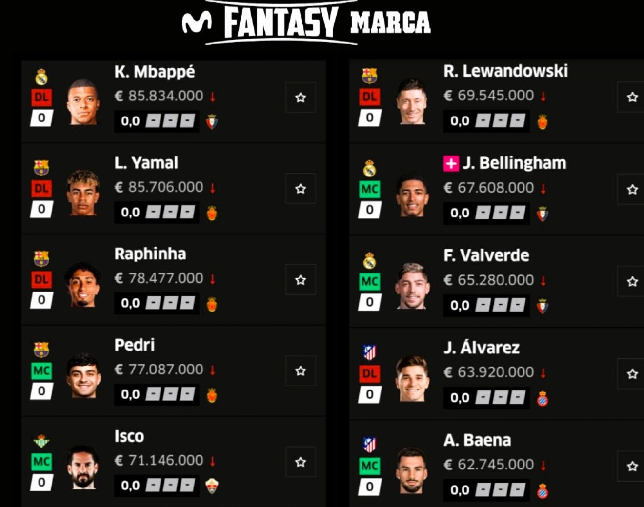 La top 10 di Laliga per valore di mercato presso il marchio Fantasy Movistar.